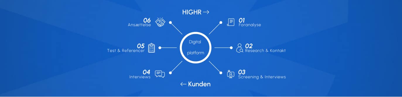 I et konkurrencepræget kandidatmarked, hvor det er svært at tiltrække nøglespecialister og ledere med almindelige rekrutteringsstrategier som annoncering og netværk, kan samarbejdet med HIGHR aktivere de ”passivt jobsøgende” kandidater og skabe en relevant kandidatpipeline. HIGHR udpeger og kontakter de mest relevante kandidater og præsenterer dem for jobmuligheder. Efter screeningsinterview sendes kandidaterne videre til samtale hos kunden, som herefter overtager processen. Vi leverer i gennemsnit 3-6 kandidater per rekruttering og bruger 35-45 timer over 3-6 uger.